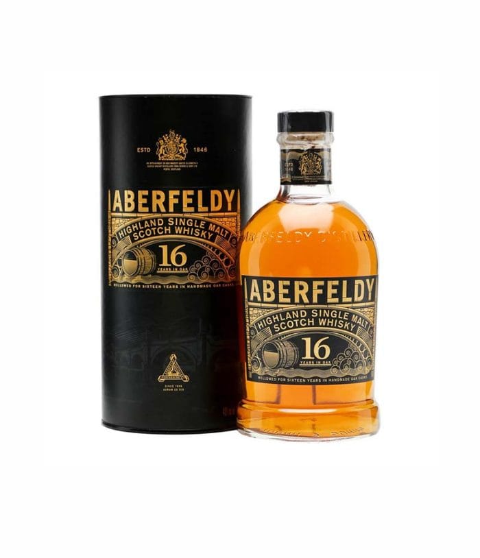 В градчето Аберфелди, на границата с високопланинския Perthshire в Шотландия се намира дестилерия, изтъкана от традиции и известна само на познавачите и на редки пътници. В Aberfeldy 16 y.o. се откроява необикновената алхимия на Alba, със силен аромат на пчелен мед, цитрусови плодове и пикантен карамфил. Плътно като шира и с неочаквани нотки на тъмен шоколад.