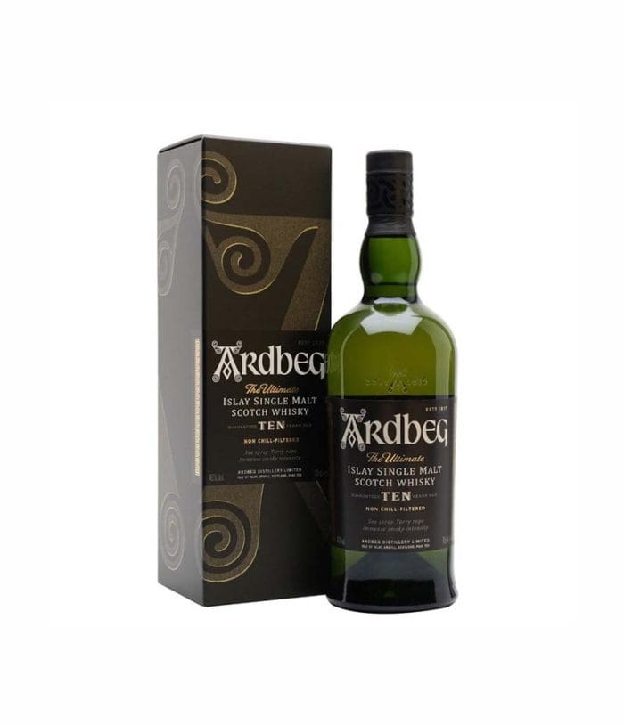 Ardbeg 10 Year Old e почитано като най-торфеното и опушено уиски идващо от остров Айла. Абсолютна класика, един от най-комплексните сингъл малцове, който не акцентира върху силния си торфен вкус, а по-скоро върху естествената сладост на малца и перфектния баланс.
