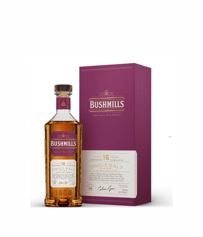 Bushmills 16 Year Old Single Malt е тройно дестилирано, отлежало в три вида бъчви – от бърбън, шери и портвайн. То е смесено от два вида уиски, първото отлежава 16 години в бърбън бъчви,a второто в шери бъчви. Накрая те се събират, за да направят този чудесен сингъл малц, в бурета от сладък портвайн. Цветът е доста по-наситен и с дъх на подправки. Разликата с обикновените блендед уискита на същия бранд е значителна.