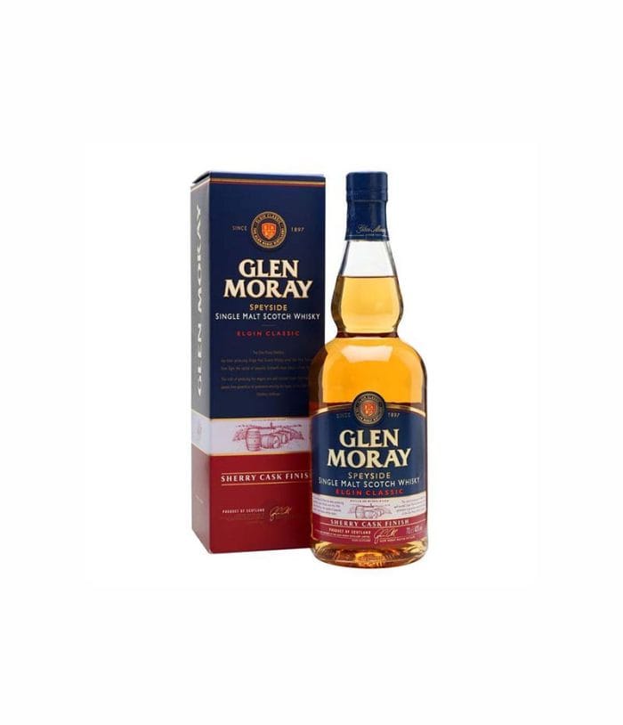 Glen Moray Classic Sherry Finish Single Malt предлага нов подход в традиционните методи за отлежаване на шотландското уиски в шери бъчви. Двойно отлежало – първо в бъчви от американски дъб и после в такива на Oloroso шери – това е уиски с характер и силни вкусове. Glen Moray внимателно избира само първокачествени винтидж шери бъчви, които да бъдат изпратени до дестиларната в Спейсайд за втората фаза на отлежаване. През това време, уискито взема сладостта, ореховия вкус и плодови характеристики, асоциирани с най-доброто Oloroso. Консумира се с маслени сладки или богат плодов кейк. Като алтернатива може да съчетаете пикантността на уискито с готвено на бавен огън чили кон карне.