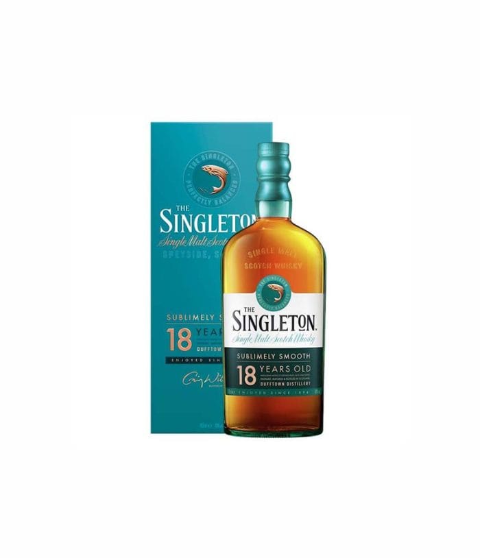 Singleton 18 Y.O е сингъл малц от Speyside, идващ от дестилерията на Дъфтаун, Сингълтън с кремообразен, малцов вкус. Този сложен и зрял Single Malt има дълбок кехлибарен вид с атрактивна и добра текстура. Перфектен баланс между меките, узрели плодове от ябълка и къпина и пикантната сухота. Сладките му нотки на есенни плодове са перфектно балансирани от орех, пикантна сухота. Свежест на задушени плодове. Дървен дим, подправен с лек черен пипер. С интензивен сладък мирис на ванилия и задушени есенни плодове The Singleton of Dufftown 18 Year Old е фино структурирано, гладко, богато уиски. Идеалният подарък за тези, които искат да опитат един достоен Single Malt от Speyside.